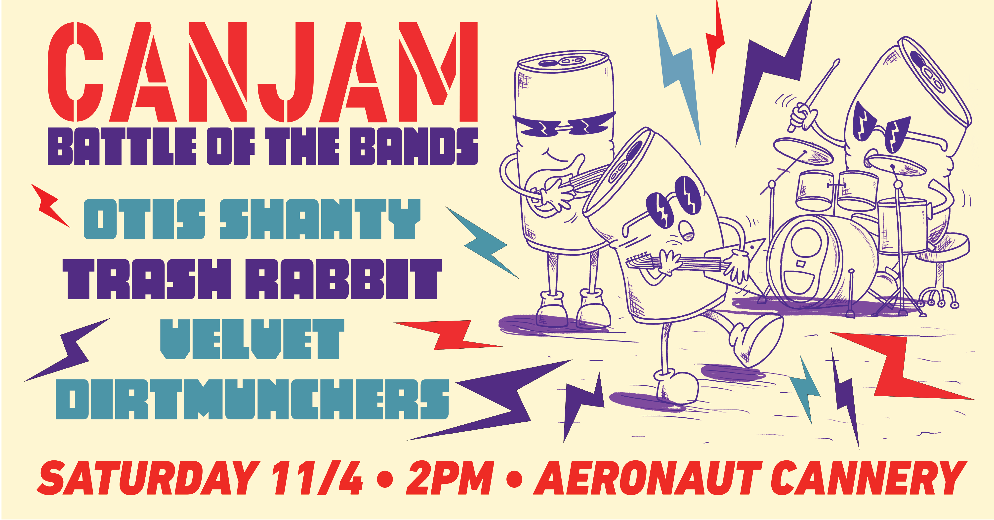 The Brief: A label for the second anniversary Aeronaut Cannery beer release that included a sense of place inspired by the actual brewery floor and playful, music-themed designs as an ode to the battle of the bands that would take place during the anniversary celebration. The design was to feature bright, lively colors and a fun theme that could be used for merchandise. Illustration was created in Procreate and Adobe Photoshop, coloring and formatting was done in Photoshop. Additional assets (event signage, merchandise design) was done in Adobe Illustrator.