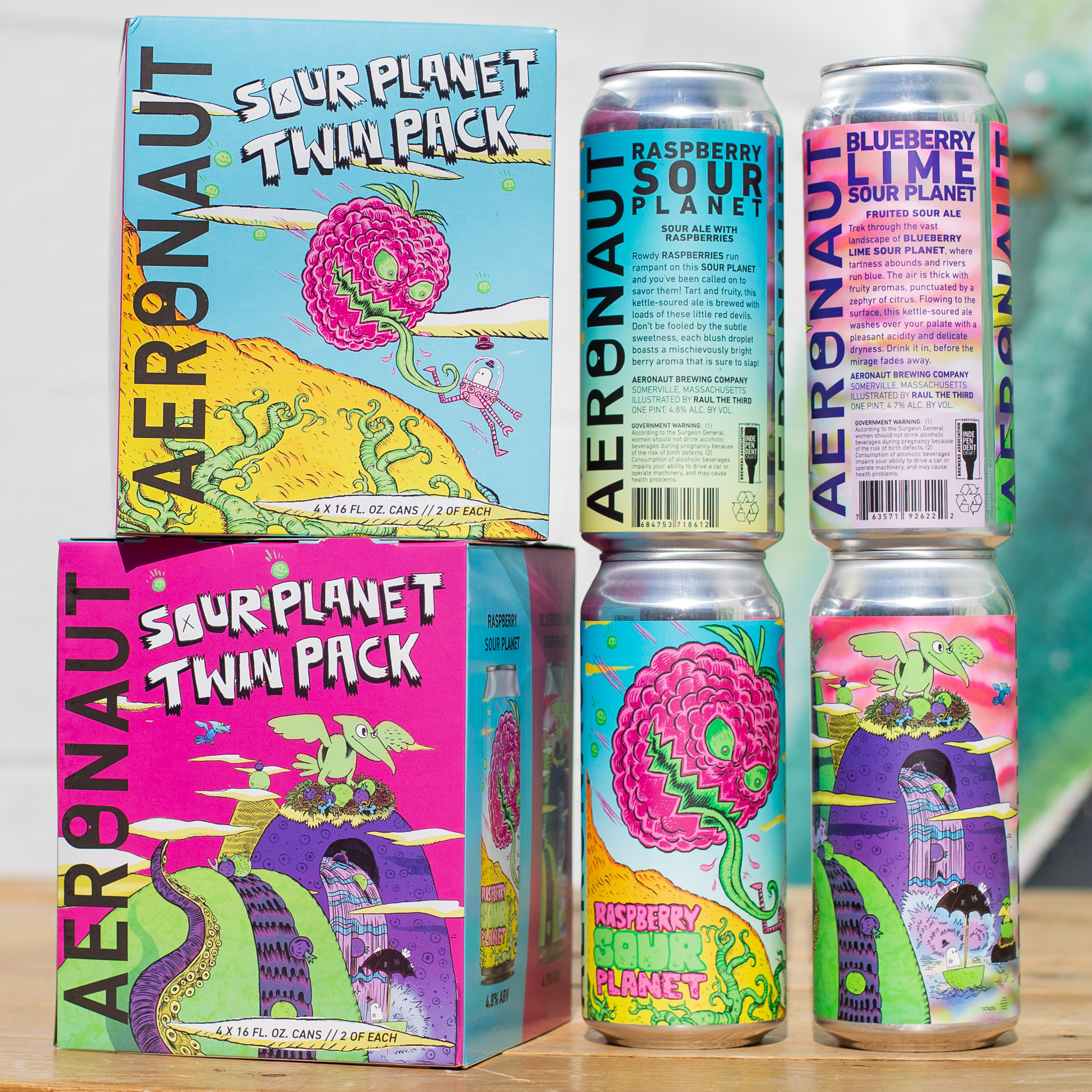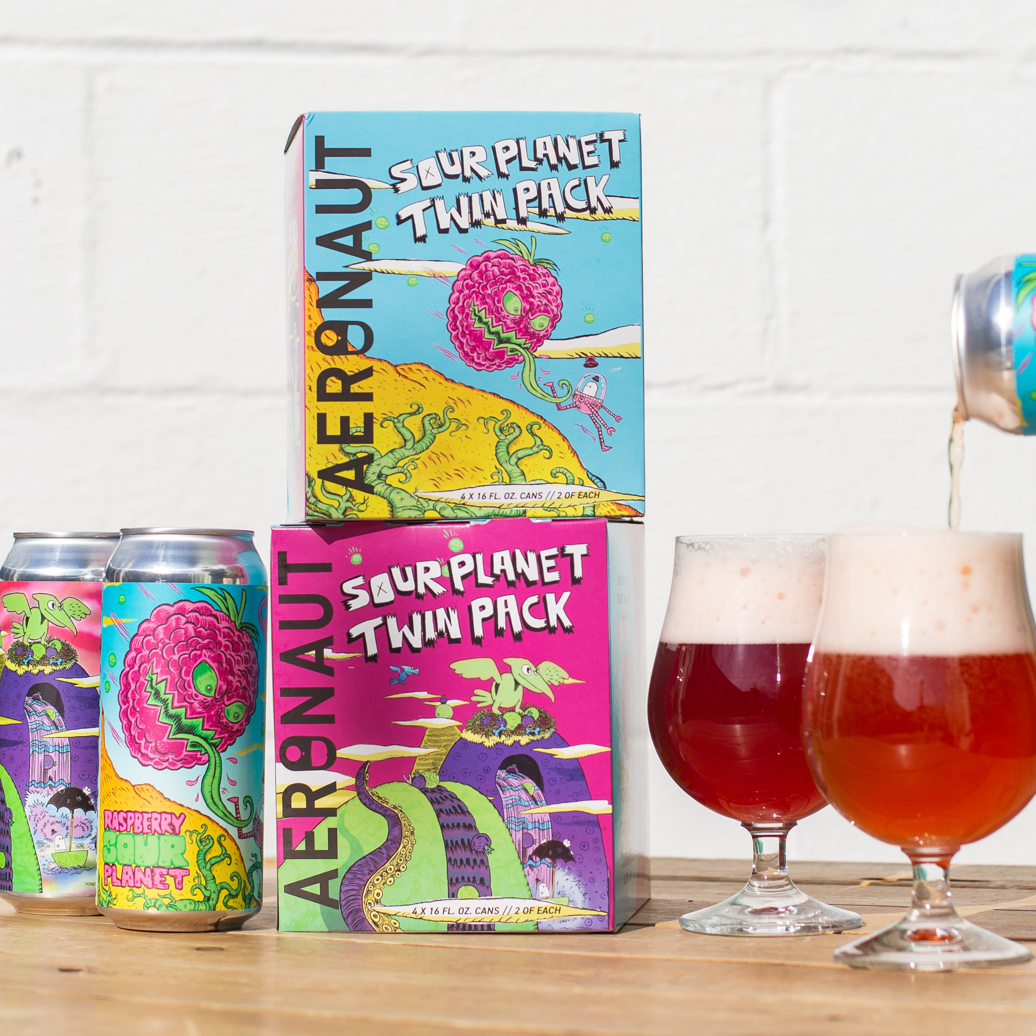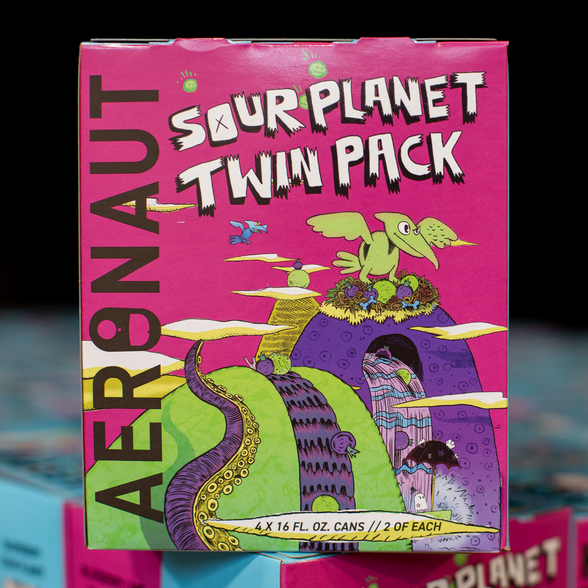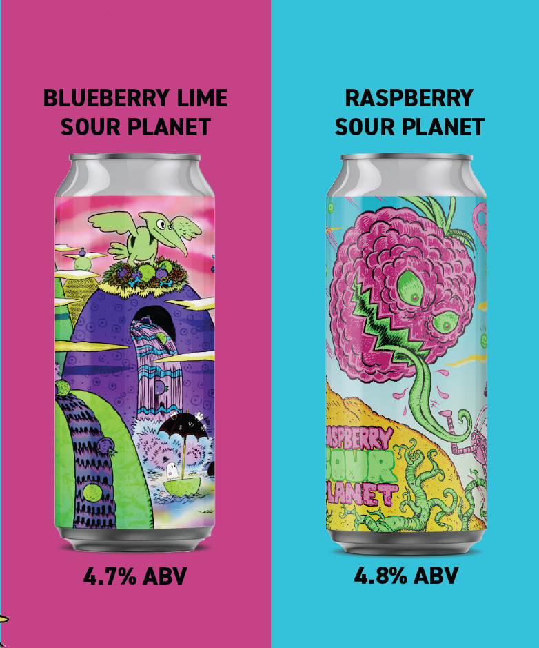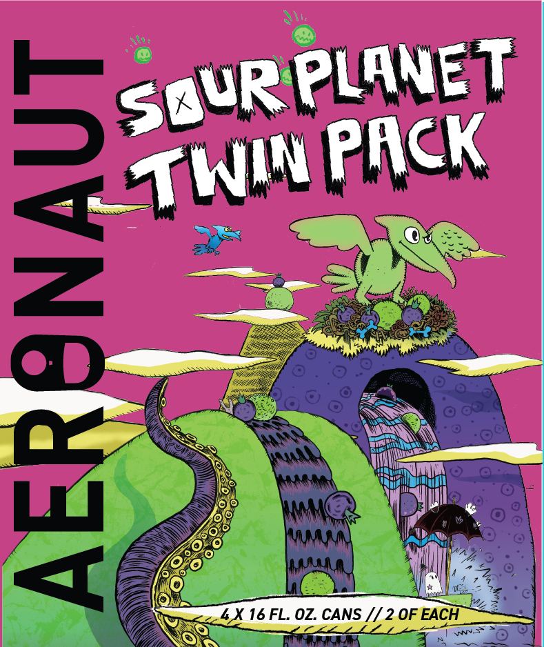 The Brief: Using existing can art assets, create a 4-pack box design for the release of the “Sour Planet Twin Pack.” The mix pack title header was illustrated in Procreate, all additional formatting and layout was done with Photoshop and Illustrator.