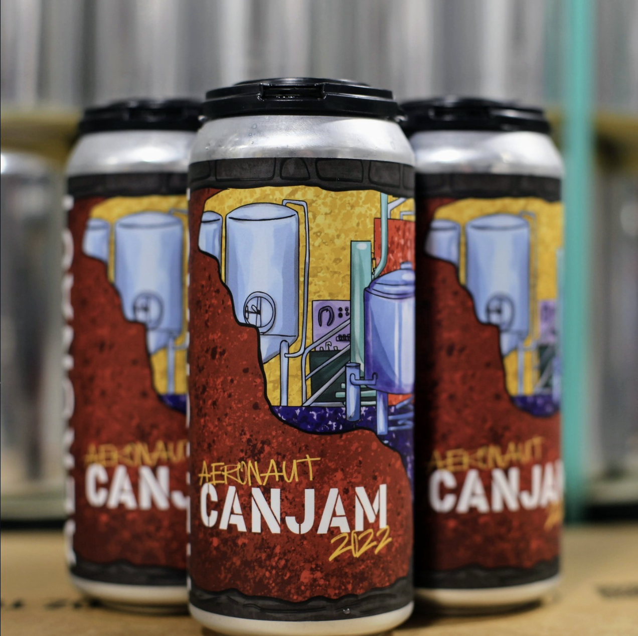 The Brief: A label for the first anniversary Aeronaut Cannery beer release that included a colorful illustration featuring brand colors, the brewery floor, and an industrial-style design. Illustration was created in Procreate and Adobe Photoshop, coloring and formatting was done in Photoshop. Additional assets (event signage, merchandise design) was done in Adobe Illustrator.
